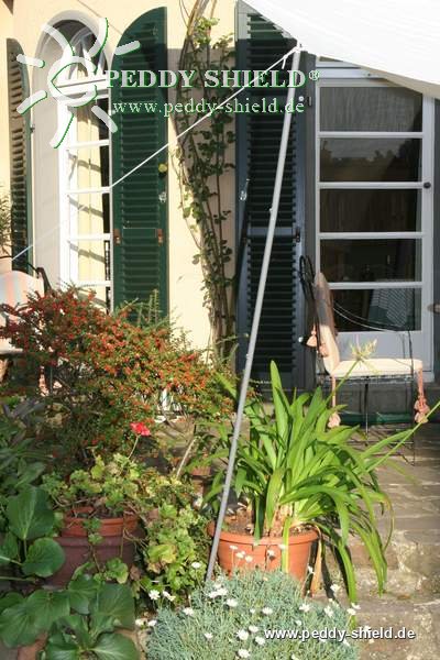 Voile d ombrage avec piquet de soutienVoile ombrage avec piquet de soutien sur terrasse