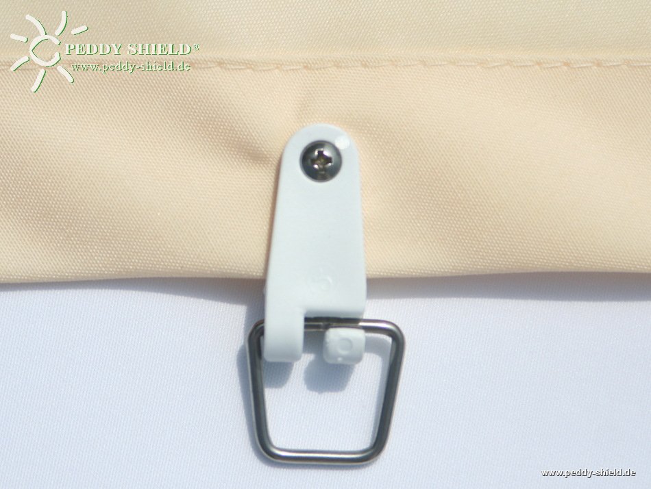 Notre tissu en polyester, traité anti -UV a la particularité d'être léger (200 g/m²) et imperméabilisé. .Le tissu peut être lavé avec les crochets à 40°C. Il s'agit plus précisément d'une voile semblable à celle utilisée pour les parasols. Nous en sommes le distributeur exclusif. (introuvable dans le commerce) - Les mesures de la voile se calculent suivant la distance entre les deux câbles en acier posés en parallèle en tenant compte des crochets (2 cm). - Nous vous conseillons de monter le système de fixation et les câbles dans un premier temps. Si vous posez plusieurs voiles de même taille , faites attention à laisser le même écart entre les câbles (par exemple, pour la couverture d'une véranda). Vous pourrez calculer la taille de la voile selon vos souhaits : voile tendue ou relâchée (voir les instructions de montage) - Prévoir un ourlet de 2 cm - coudre de préférence avec du fil en polyester - Visser les crochets sur l'ourlet de la voile. Ces crochets sont à commander avec la voile . Nous vous conseillons une distance entre les crochets de 27 cm ou de 15 cm si vous souhaitez un effet tendu. - La voile peut se replier facilement d'un côté ou de l'autre (graisser très légèrement le cable si nécessaire). Accessoires disponibles : - stoppeurs de crochets de guidage pour maintenir la voile dans la position dépliée et repliée. - dispositif de fermeture à distance permettant de déplacer facilement la voile. - Vous trouverez le système de fixation des câbles à la rubrique Kit Pergola avec 4 équerres de montage pour 2 câbles à 7m, Kit Pergola (sans équerres de montage) ou Accessoires Notre service couture peut réaliser votre voile sur mesure.